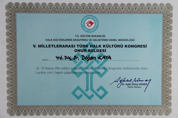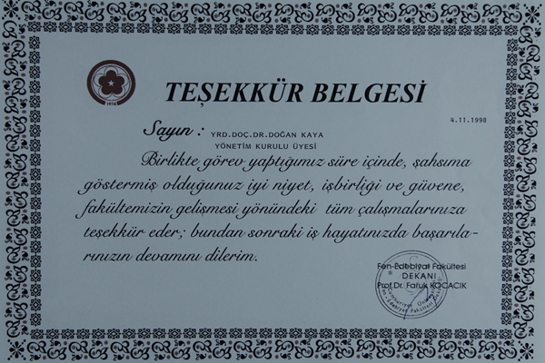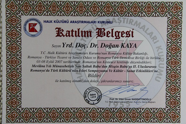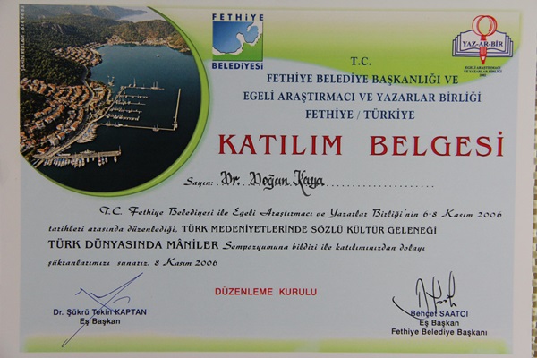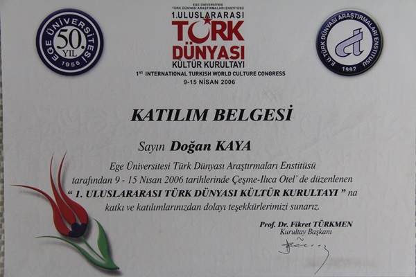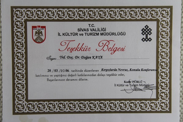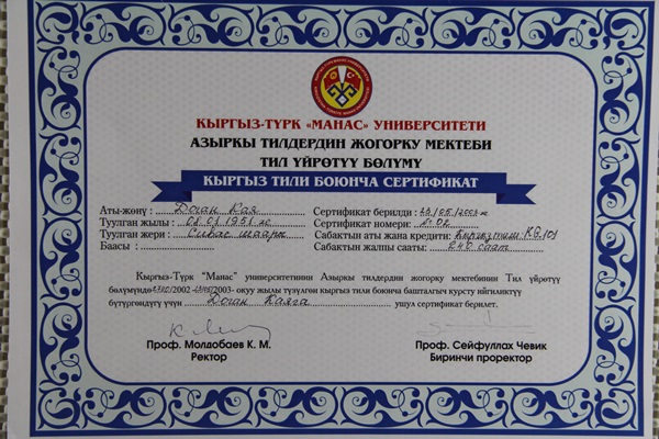 2003 Kırgız-Türk Manas Üniversitesi Sertifika