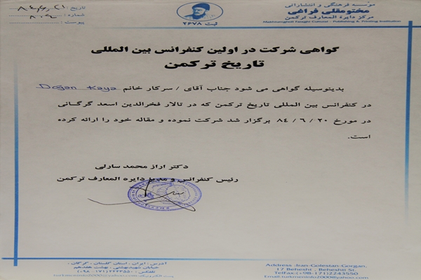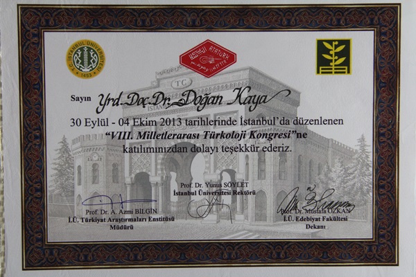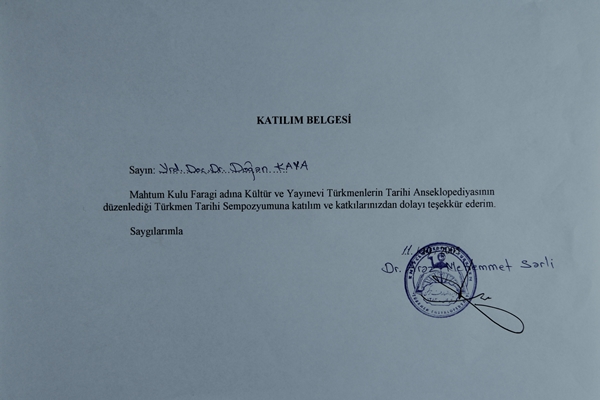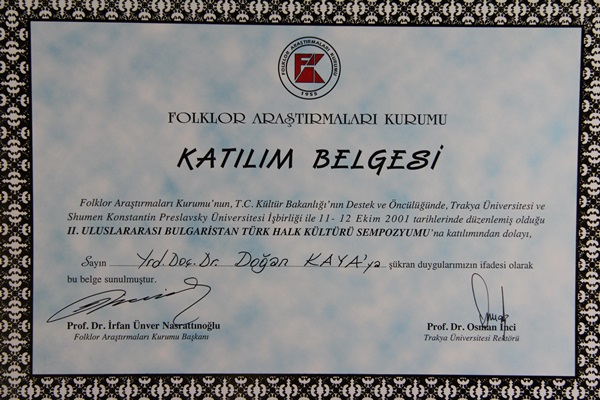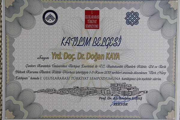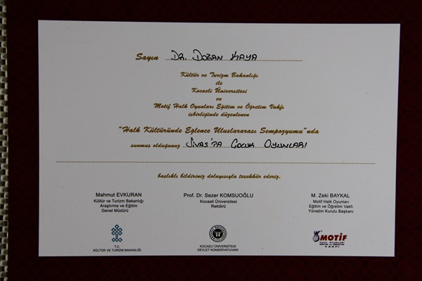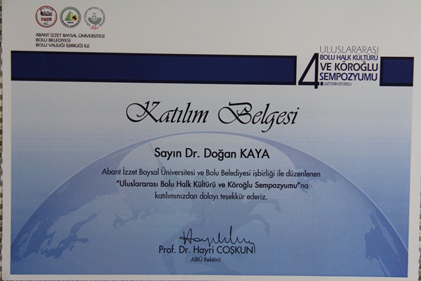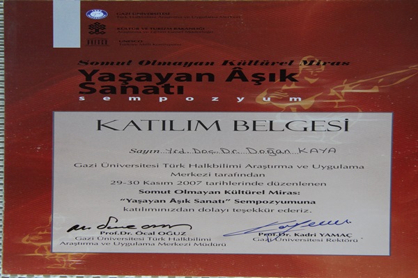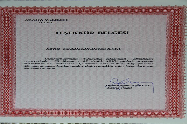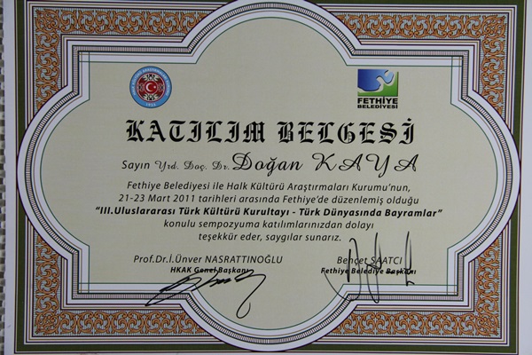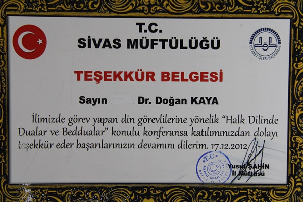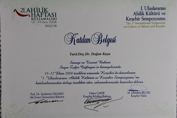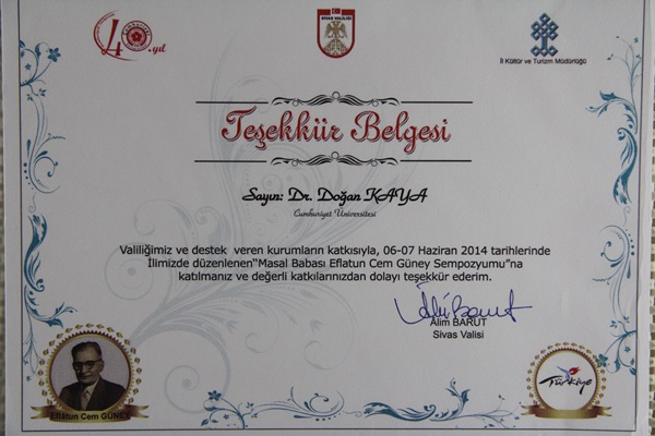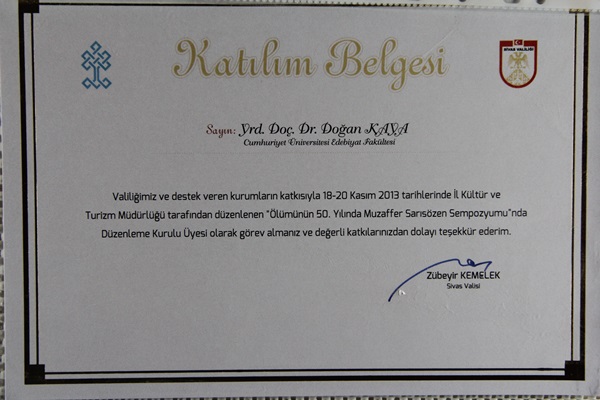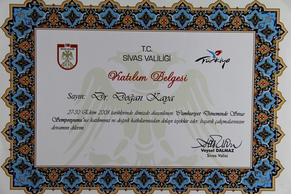 2008 Cumhuriyet Döneminde Sivas Sempozyumu (Valilik Tarafından Katılım Belgesi)