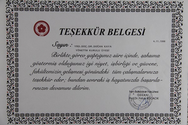C.Ü. Fen-Edebiyat Fakültesi Dekanı Faruk Kocacık Tarafından (1998)
